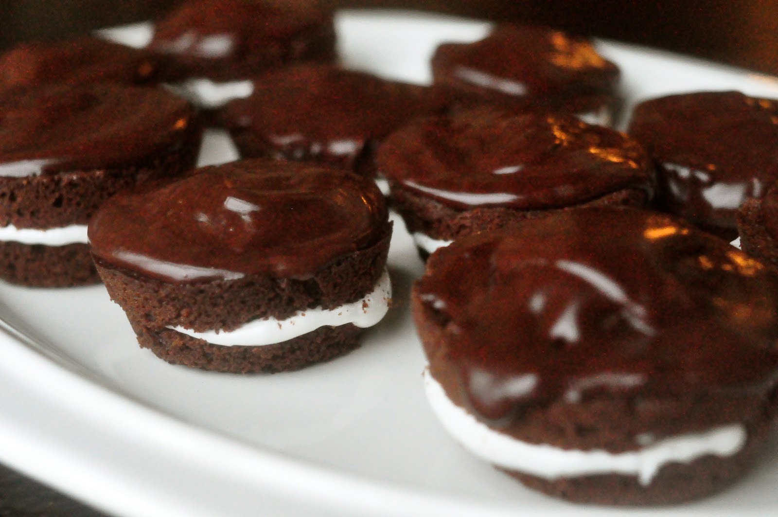 See? They may not be exactly what Dorie had in mind, but I followed the "spirit" of the recipe?? Yeah, whatever. I had to do something, because not participating is not an option. Remember? I'm on probation here. So this is what you get. Frankly, it doesn't matter what they look like, because they're freaking delicious! My version is basically a hostess cupcake. How bad can that be?